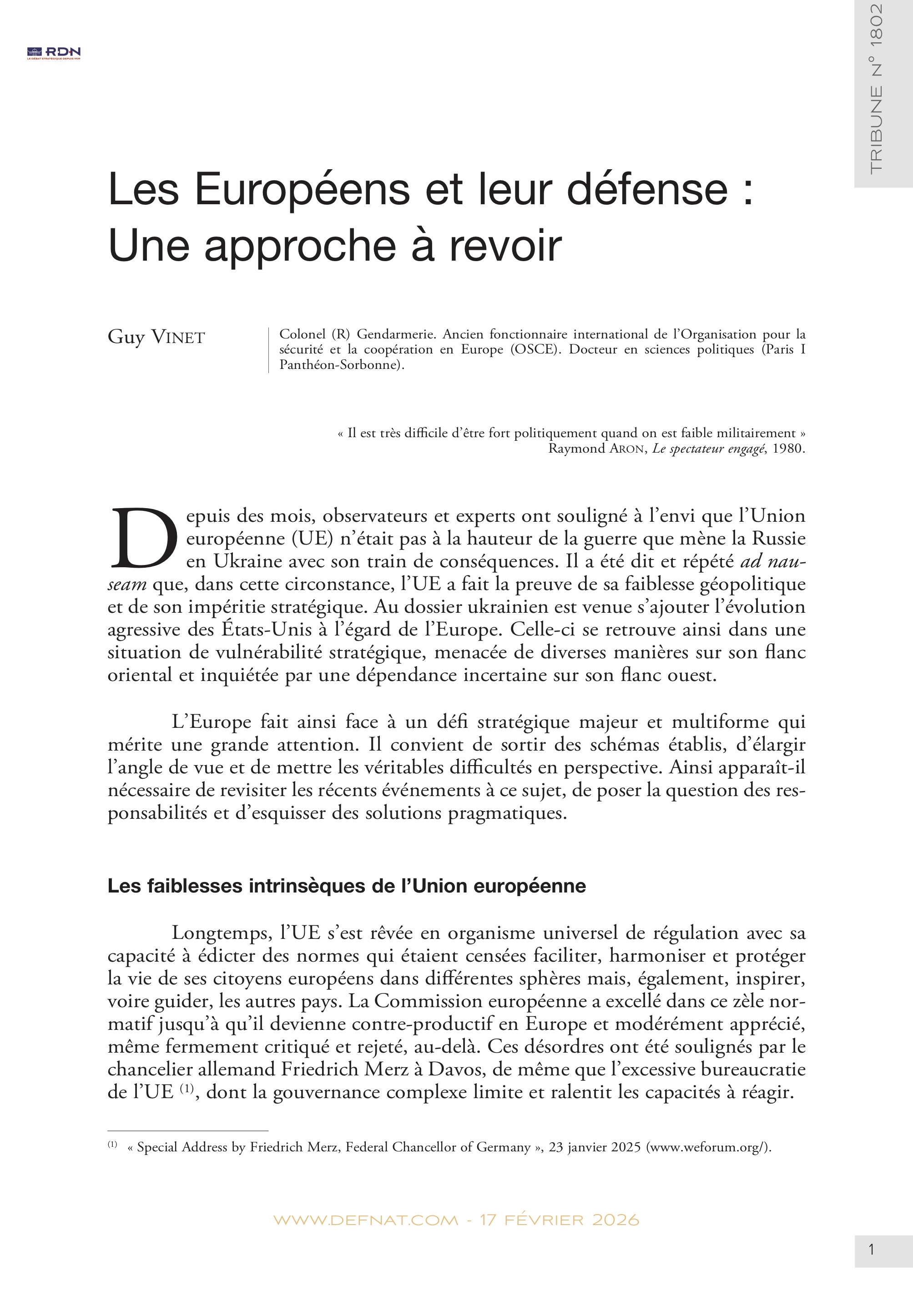 « Il est très difficile d’être fort politiquement quand on est faible militairement »