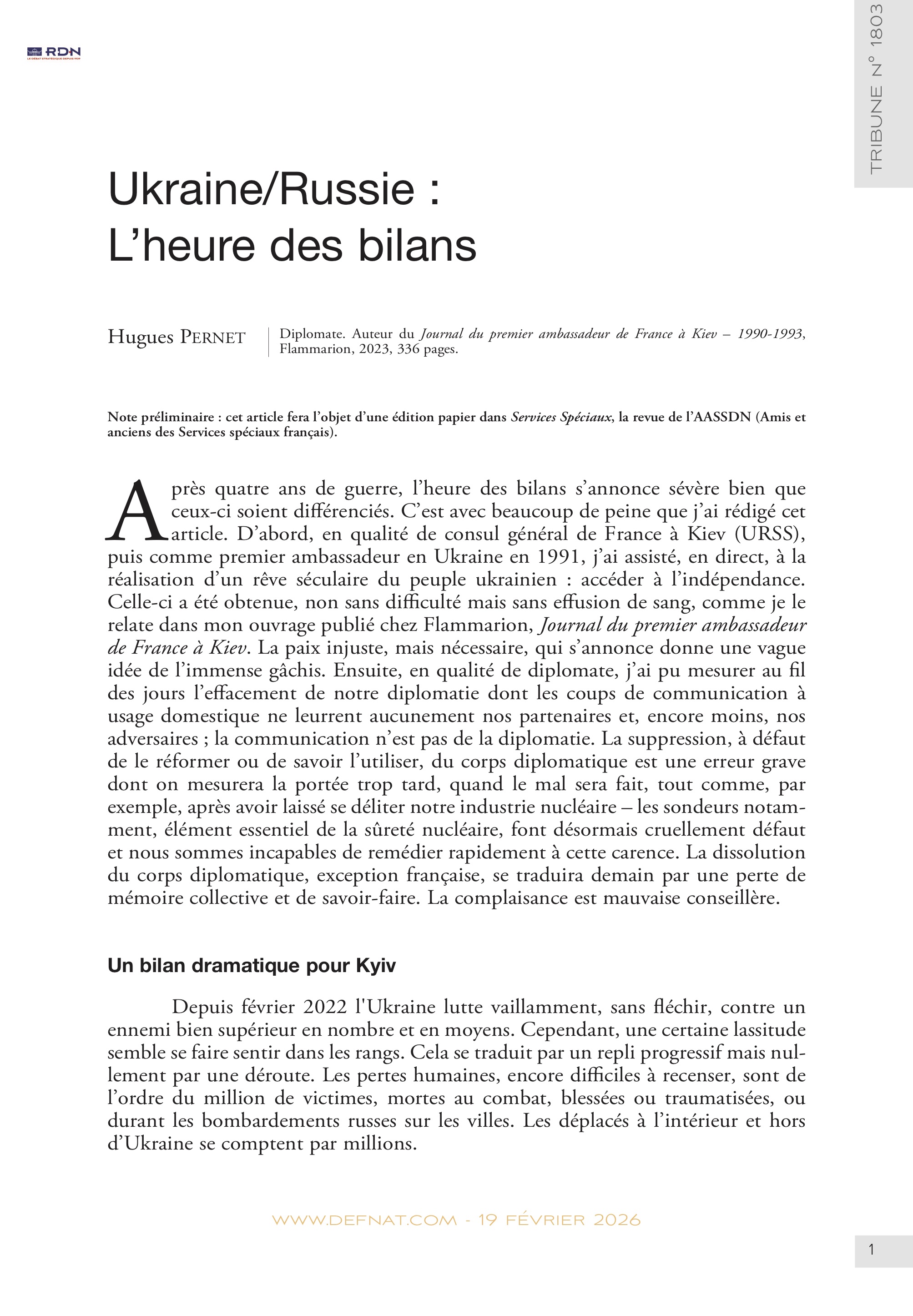 Après quatre ans de guerre, l’heure des bilans s’annonce sévère bien que ceux-ci soient différenciés. C’est avec beaucoup de peine que j’ai rédigé cet article. D’abord, en qualité de consul général de France à Kiev (URSS), puis comme premier ambassadeur en Ukraine en 1991, j’ai assisté, en direct, à la réalisation d’un rêve séculaire du peuple ukrainien : accéder à l’indépendance. Celle-ci a été obtenue, non sans difficulté mais sans effusion de sang, comme je le relate dans mon ouvrage publié chez Flammarion, Journal du premier ambassadeur de France à Kiev. La paix injuste, mais nécessaire, qui s’annonce donne une vague idée de l’immense gâchis. Ensuite, en qualité de diplomate, j’ai pu mesurer au fil des jours l’effacement de notre diplomatie dont les coups de communication à usage domestique ne leurrent aucunement nos partenaires et, encore moins, nos adversaires ; la communication n’est pas de la diplomatie. La suppression, à défaut de le réformer ou de savoir l’utiliser, du corps diplomatique est une erreur grave dont on mesurera la portée trop tard, quand le mal sera fait, tout comme, par exemple, après avoir laissé se déliter notre industrie nucléaire – les sondeurs notamment, élément essentiel de la sûreté nucléaire, font désormais cruellement défaut et nous sommes incapables de remédier rapidement à cette carence. La dissolution du corps diplomatique, exception française, se traduira demain par une perte de mémoire collective et de savoir-faire. La complaisance est mauvaise conseillère.