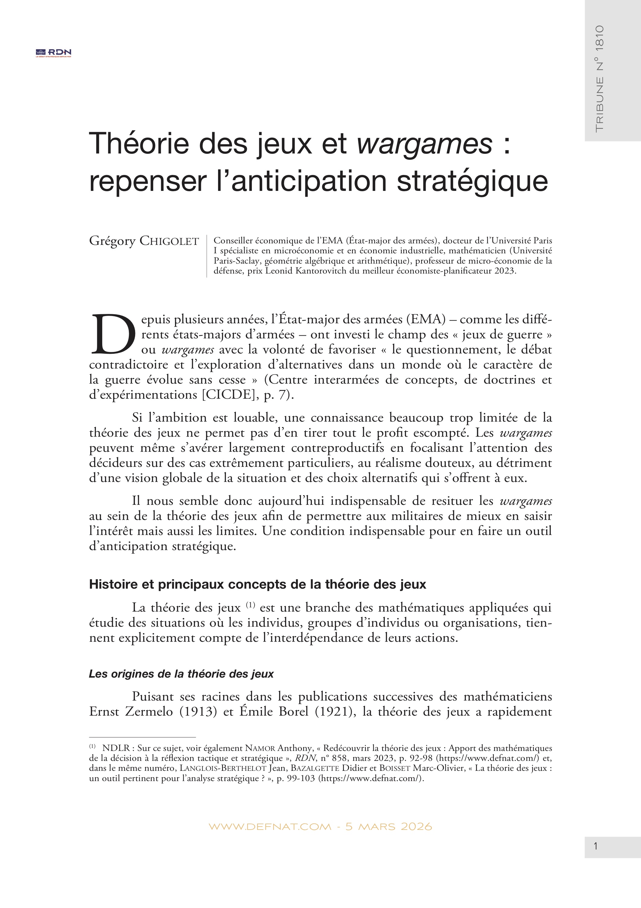Théorie des jeux et wargames : repenser l’anticipation stratégique (T 1810)