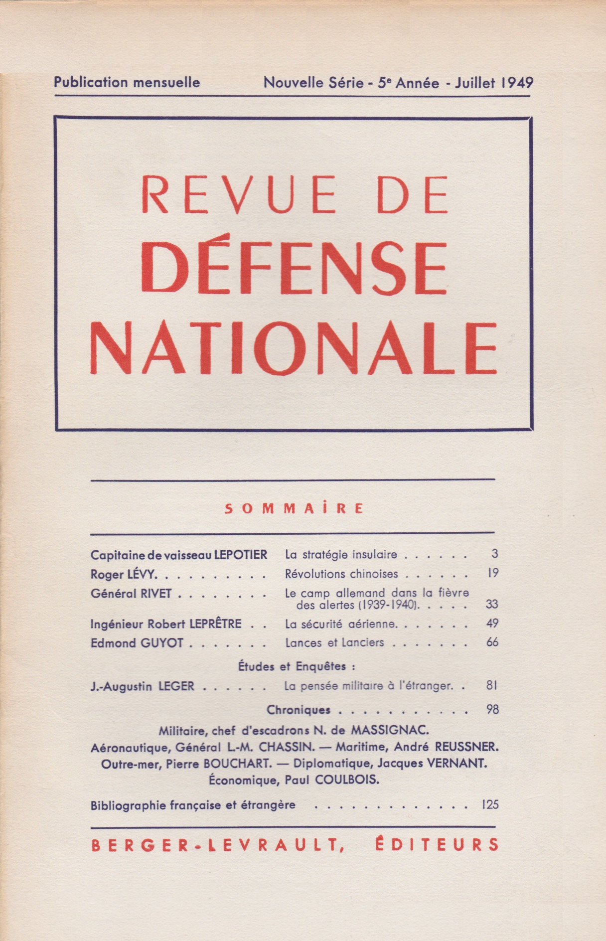 Il est peu d’époques qui aient mis en relief avec autant d’éclat que la nôtre le concept de Défense nationale. Son évolution a un double aspect : tandis que sur le plan externe il tend à perdre son caractère purement national pour évoluer dans le cadre des groupements de forces, il évolue sur le plan interne vers l’unification des moyens de défense. Ainsi, malgré les efforts louables entrepris pour amener une détente dans les relations internationales, voyons-nous la politique générale des États apparaître comme une stratégie adaptée à l’échelle des problèmes actuels, véritable sublimation de tous les éléments de force. À l’échelon national, cette sublimation prend l’aspect d’un compromis entre les possibilités financières et économiques et les exigences de la défense, où la notion de rendement prend une place capitale. Lire les premières lignes