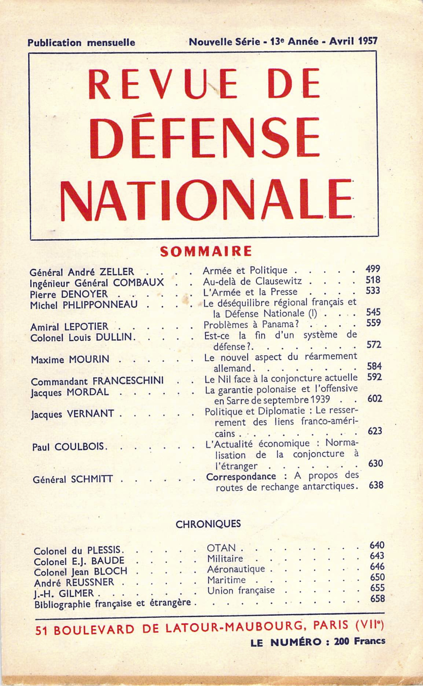 Aux yeux de beaucoup de Français, les deux termes d’Armée et de Politique semblent peu faits pour s’associer. De vieux préjugés en sont responsables, qui nous assurent en effet que l’Armée doit tirer sa force de l’isolement moral et spirituel. Il faut, dit-on, la maintenir en dehors des remous de la politique. Et, avec une logique un tantinet boiteuse, on prétextera aussi du manque d’aptitude des militaires aux affaires publiques (alors qu’il s’agit précisément de les y rendre entièrement aptes), ou encore du danger des dictatures (lesquelles ne sont pas, dans l’histoire, l’apanage du soldat). Lire les premières lignes