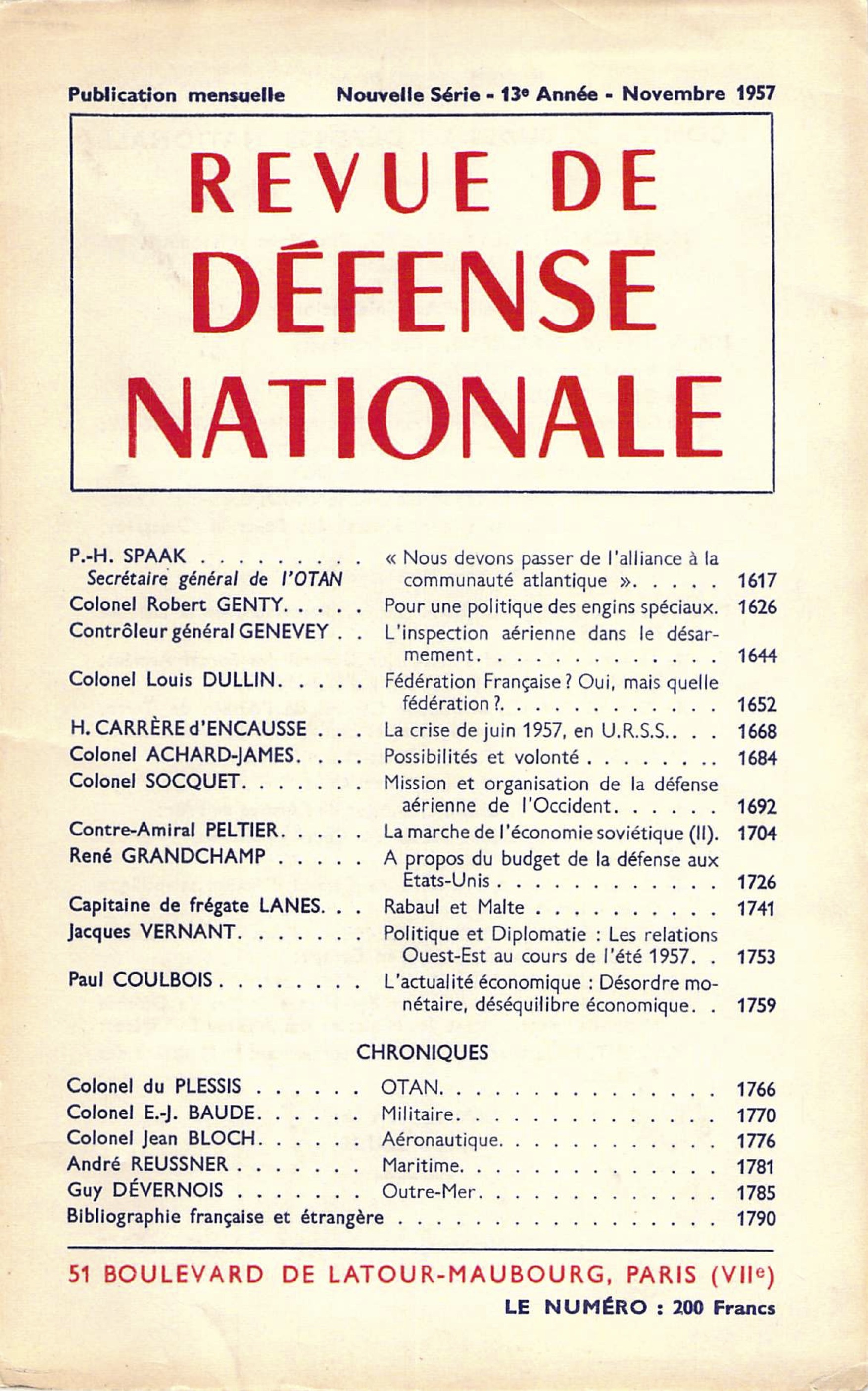 L’été 1957 a été marqué sur le plan des événements mondiaux par une crise — apparemment fort grave — au sein de l’U.R.S.S. Les commentaires n’ont pas manqué pour l’expliquer. La thèse la plus couramment admise fut celle d’une victoire des « libéraux » sur les « autoritaires », c’est-à-dire d’un début de démocratisation du régime ; elle fut suivie de nombreuses autres thèses toutes plus ou moins optimistes. Lire les premières lignes