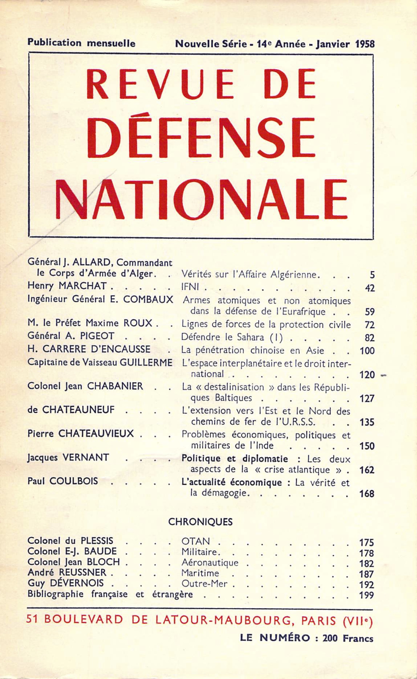 Qu’entre la conception et l’expression de la pensée et leur traduction dans les faits, il s’écoule souvent de longs délais, c’est chose normale et parfois souhaitable. Il est cependant des domaines où le temps qui passe joue contre ceux qui attendent. Tel est le cas pour l’organisation de la Défense Nationale. Lire les premières lignes