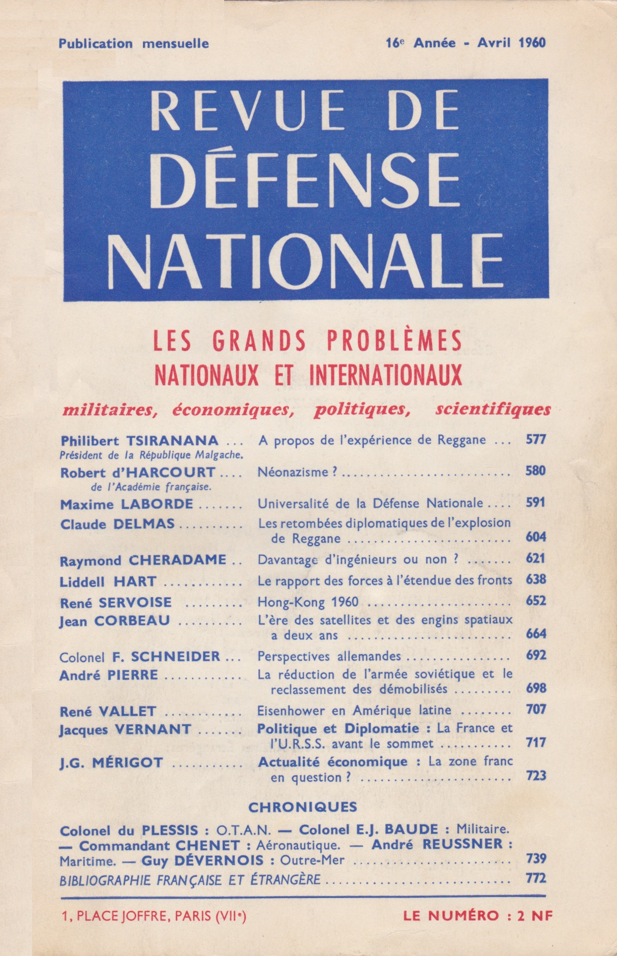 Certains renseignements rendus publics aux États-Unis et en Grande-Bretagne permettent de dessiner à grands traits l’orientation générale de la politique militaire de ces deux nations dans le domaine aéronautique. L’examen des documents relatifs à la préparation du budget 1960-1961 montre que le proche avenir sera essentiellement une période de transition caractérisée par : un effort de revalorisation du matériel existant, la mise au point de quelques matériels nouveaux et la recherche des éléments permettant de faire avancer le choix entre l’avion et l’engin. Lire les premières lignes