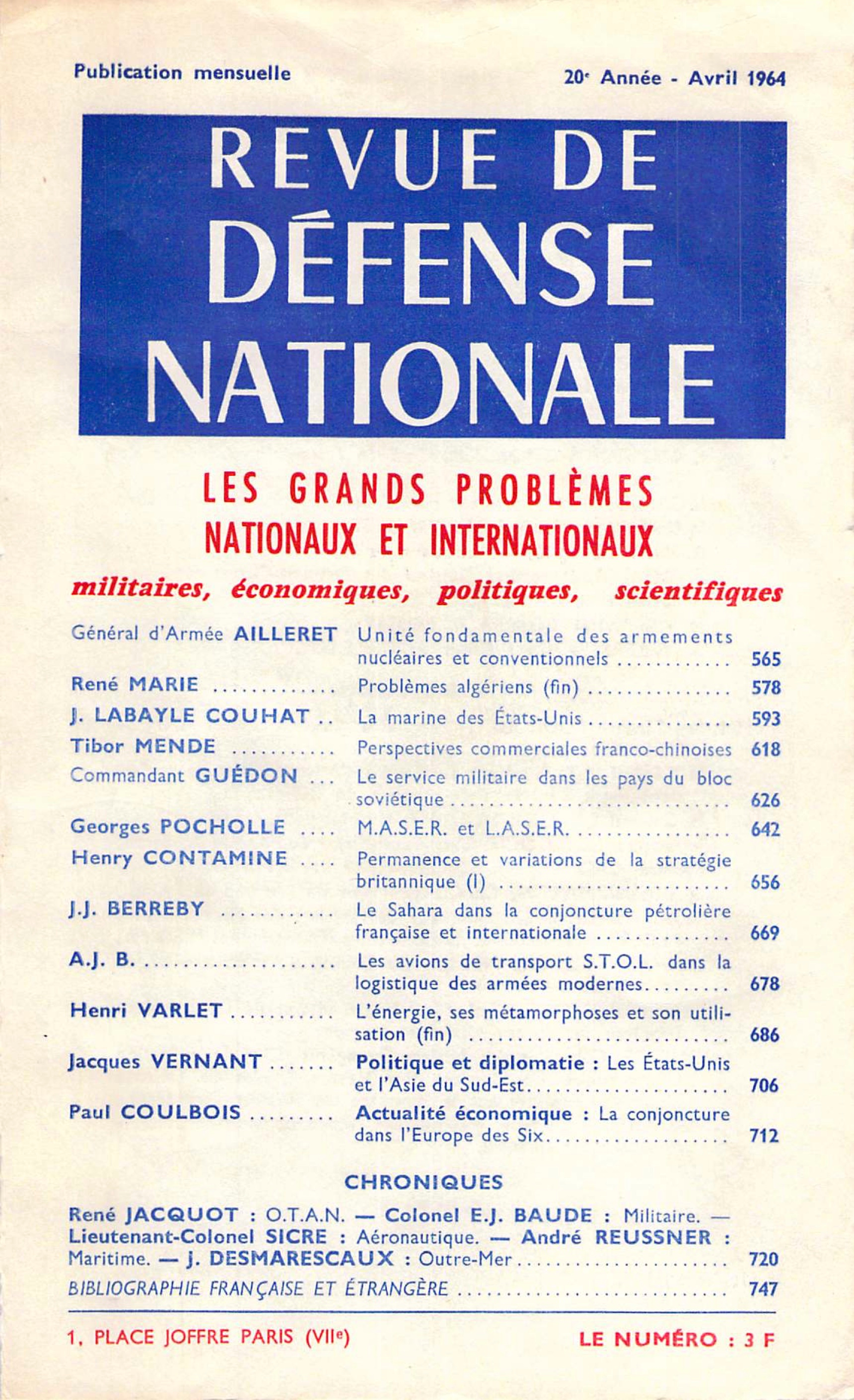 L’apparition de l’arme nucléaire d’une part, le développement de la guerre subversive d’autre part, ont considérablement modifié l’organisation des armées modernes, leur emploi et leur logistique. Lire les premières lignes