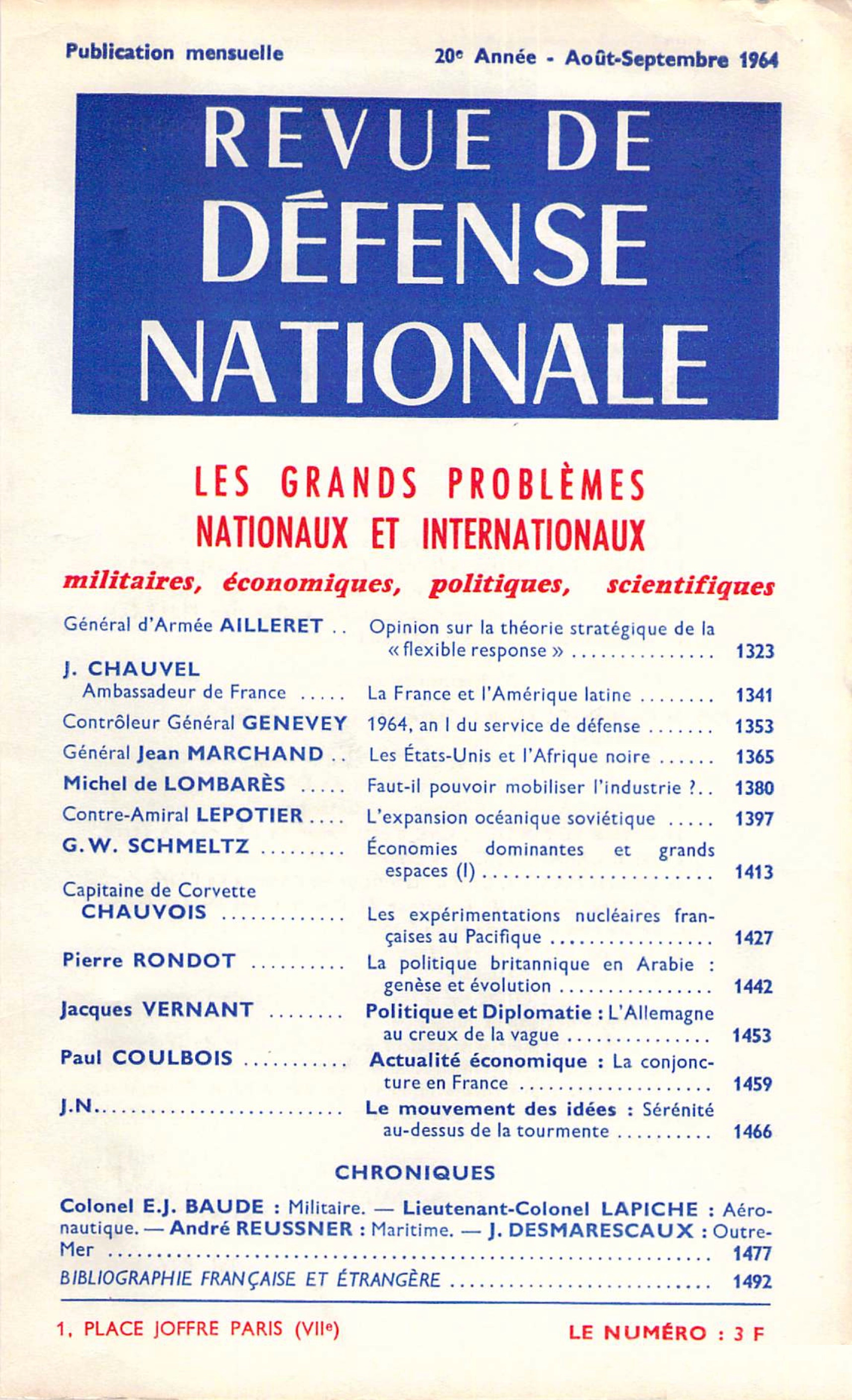 Le Comité de Défense a récemment étudié les formes possibles de service militaire dans le cadre du service national (cf. notre chronique d’avril 1964) : Lire les premières lignes