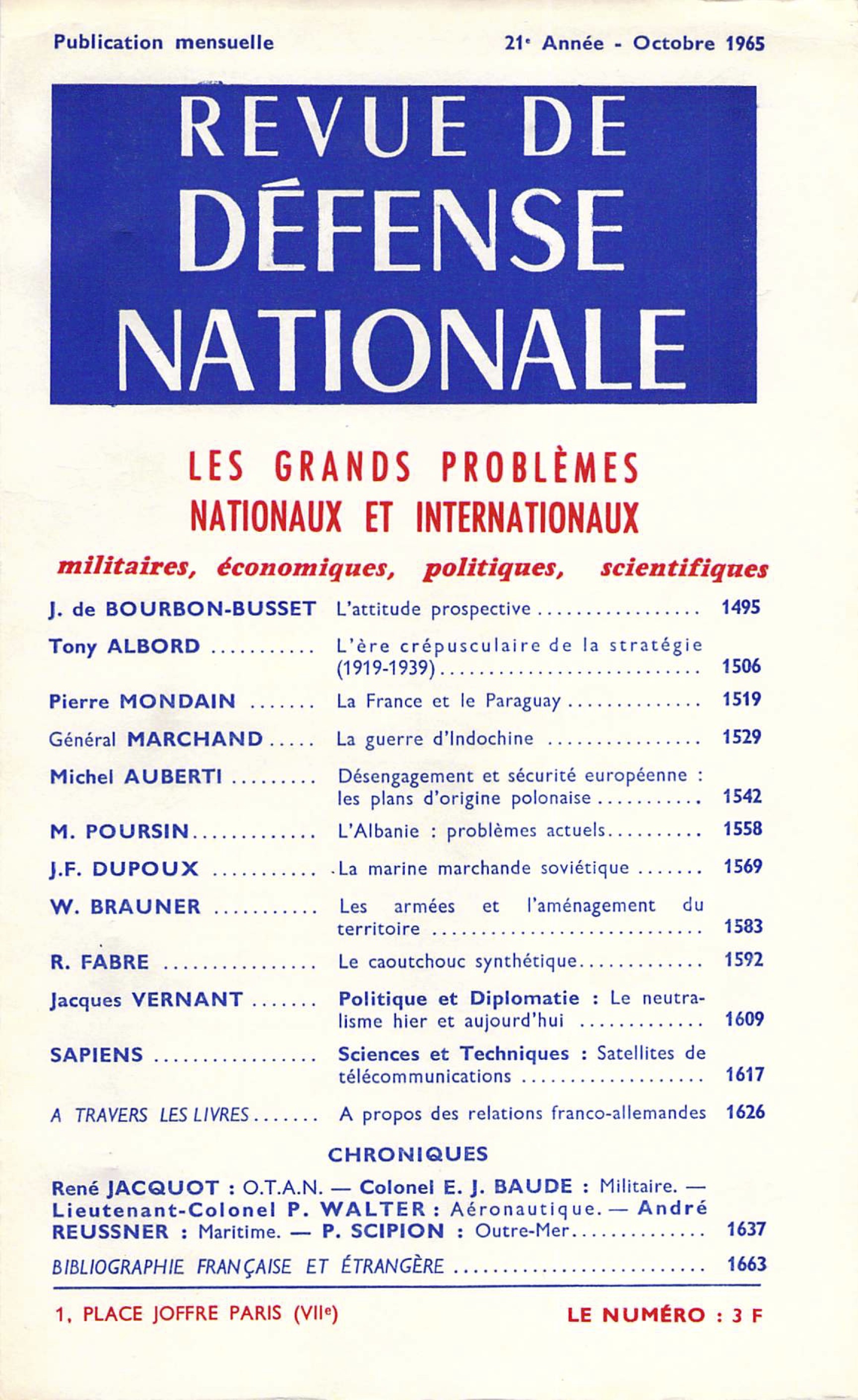 • Nos forces navales ont fait preuve, durant les mois de juillet et d’août 1965, d’une activité qui vaut d’être notée. Lire les premières lignes