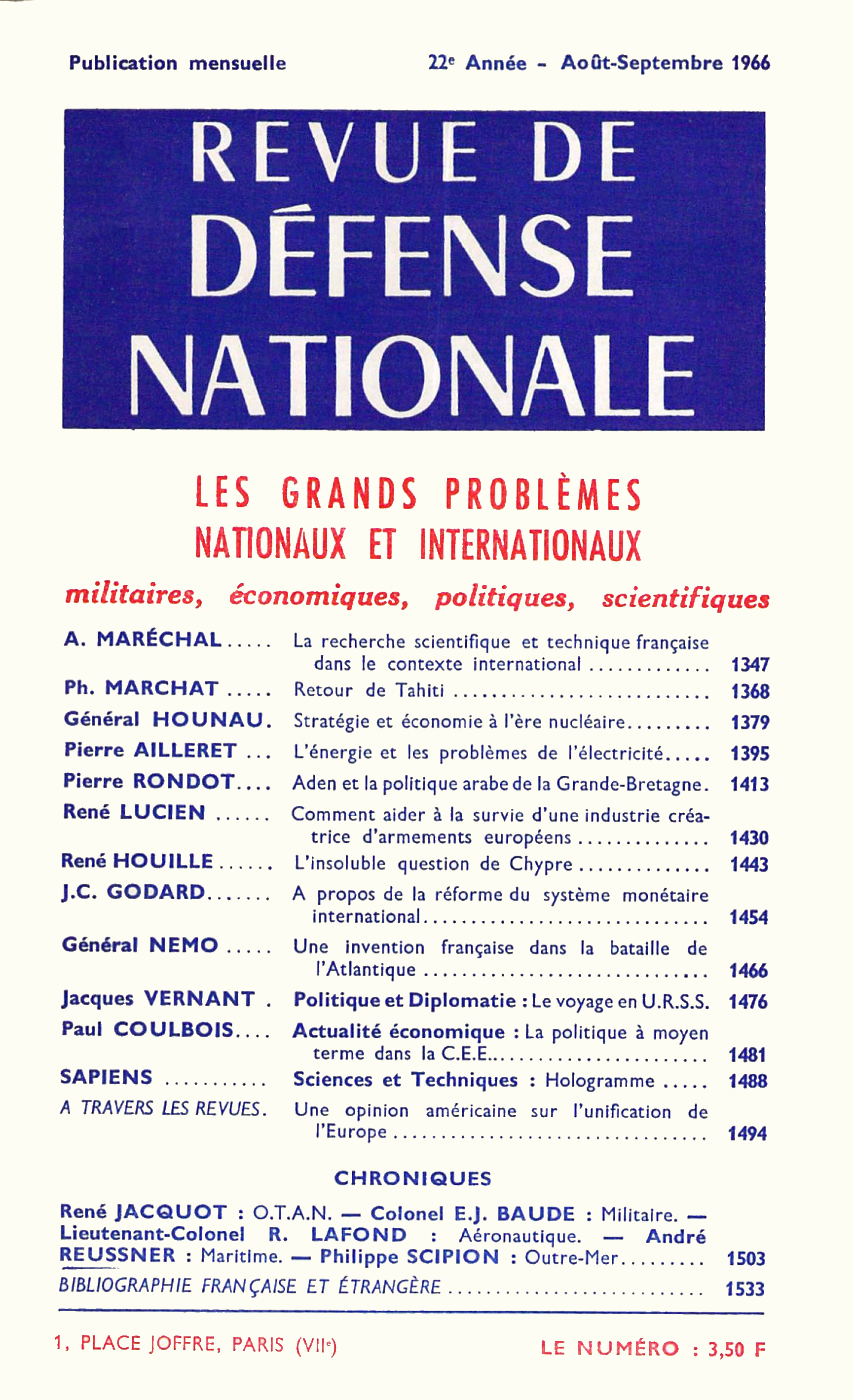 Conférence prononcée à l'Institut des hautes études de défense nationale (IHEDN) le 20 décembre 1965. Lire la suite