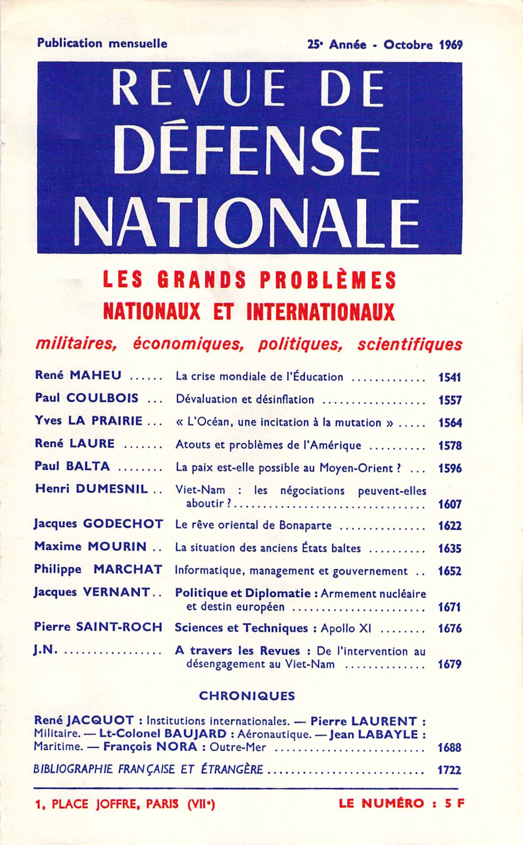 L’été n’a pas été calme. Certes, nul ne pensait que l’anniversaire de l’occupation de la Tchécoslovaquie par les troupes du Pacte de Varsovie [en août 1968] pourrait ne pas être marqué par des manifestations populaires, donc par une répression, et nul ne pensait davantage que la guerre du Vietnam et la tension au Moyen-Orient pourraient prendre des aspects fondamentalement nouveaux, du moins dans le sens de l’apaisement. Mais il eut fallu être devin pour prévoir les violences qui ont affecté l’Irlande du Nord, et, quels qu’aient pu être les déséquilibres monétaires, la dévaluation du franc. Lire les premières lignes