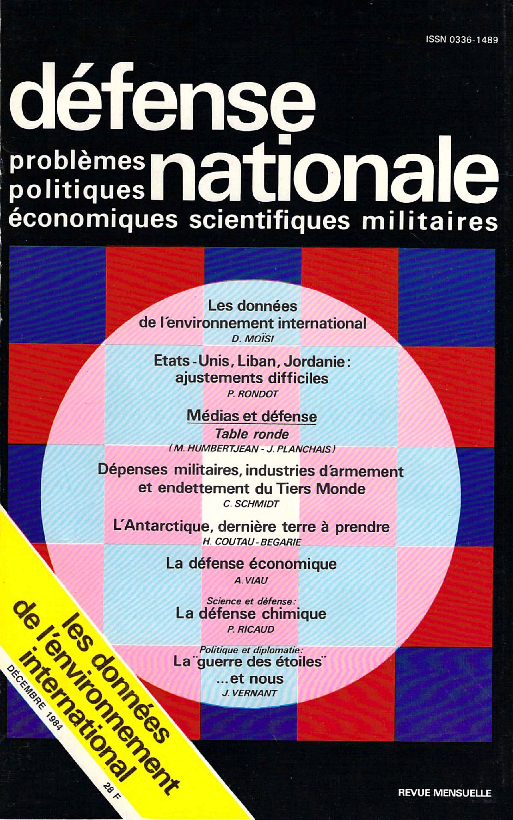 À l'occasion des journées d'étude défense et recherche universitaire, les 19 et 20 septembre 1984, l'auteur a présenté un rapport très clair sur les données de l'environnement international, volontairement limité, en raison du temps imparti, à certains « points d'ancrage ». C'est ce rapport qui est reproduit ici. Lire les premières lignes