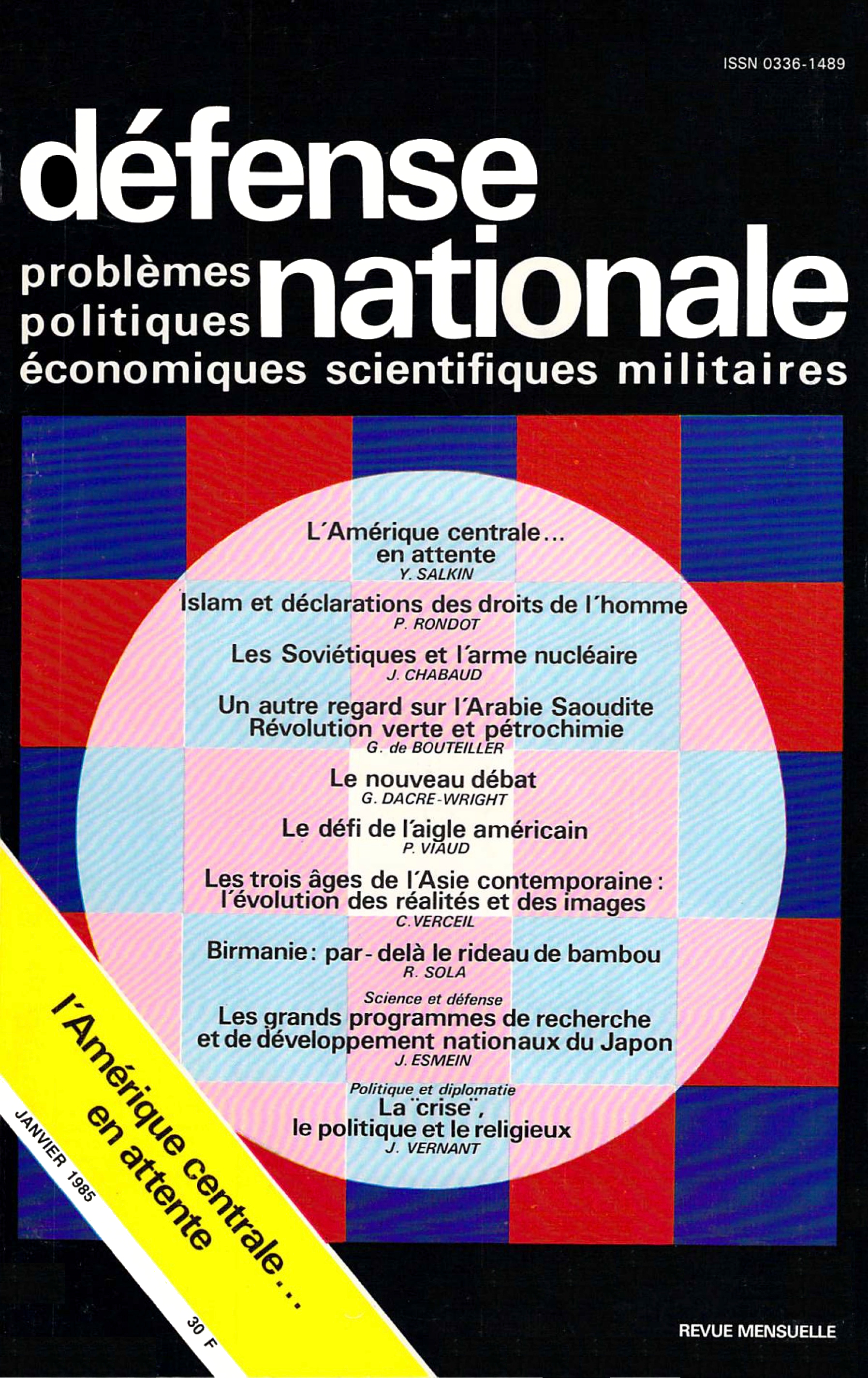 De retour de cette région, l'auteur a tenu à nous rapporter ses dernières impressions sur une situation toujours en évolution qui justifie parfaitement le titre donné à son article. Il est intéressant de noter que ce sujet vient d'être évoqué lors d'un débat organisé par Mme Martin-Pannetier et l'Association France-Amérique. En outre, la politique du président Reagan sur cette région du monde est abordée dans l'excellent article de Pierre Viaud « Le défi de l'Aigle américain ». Lire les premières lignes